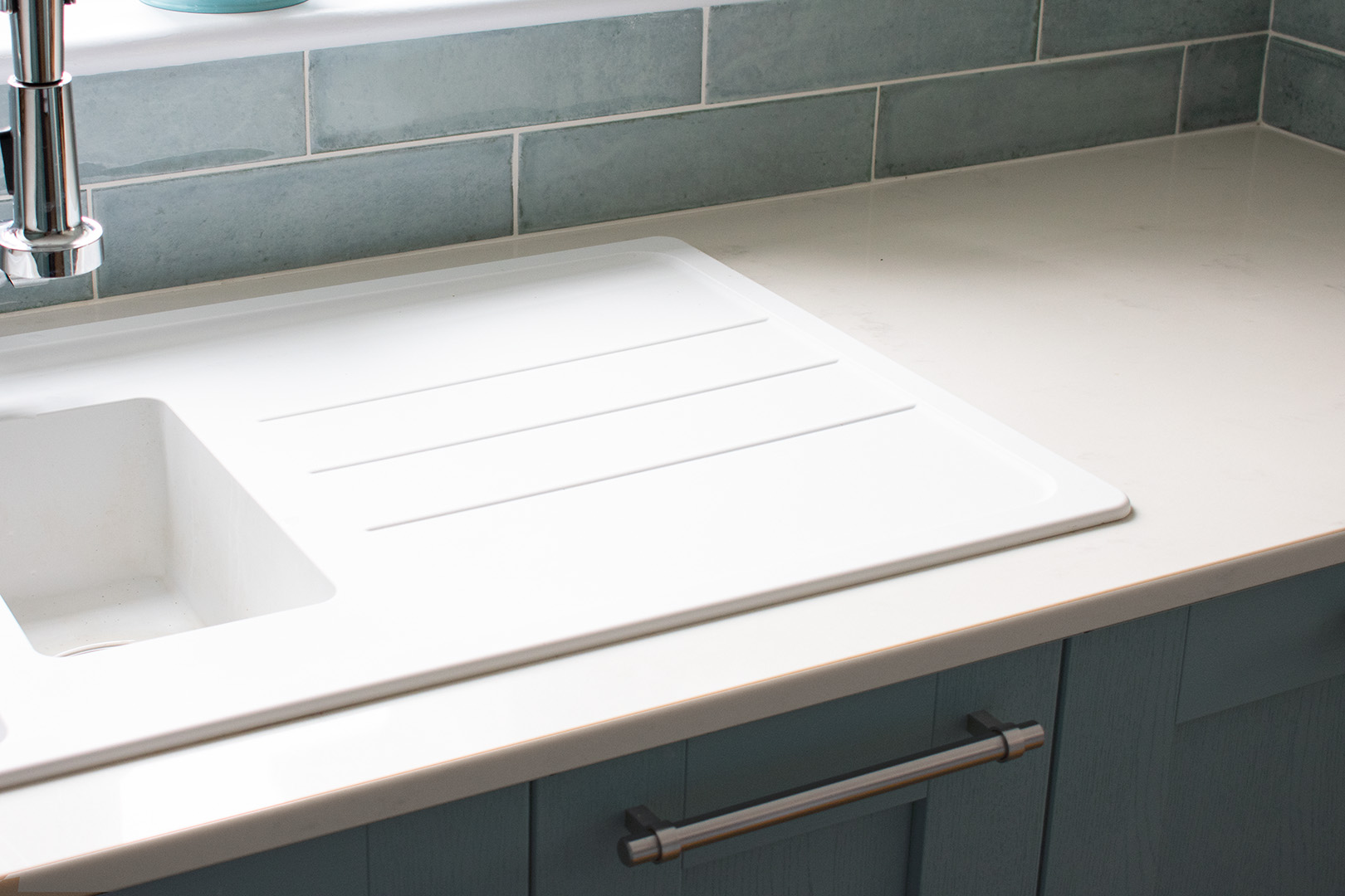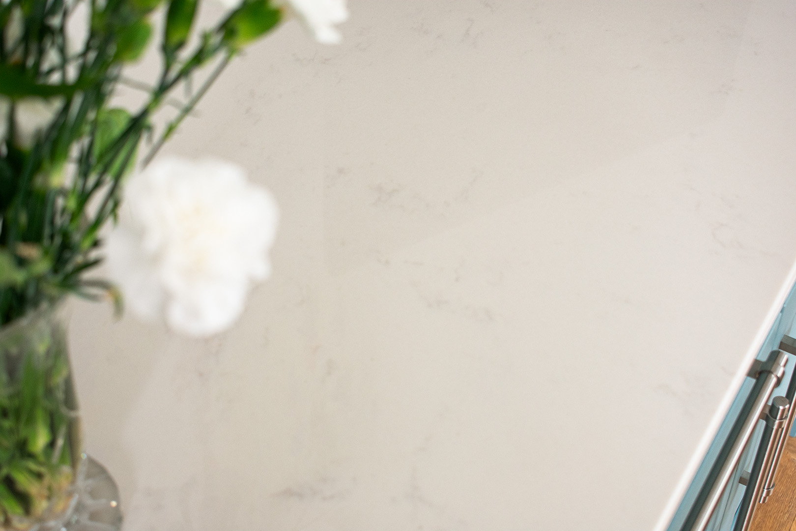 For this East Grinstead kitchen renovation, Henderstone was commissioned to fabricate and install premium 20mm Global Apollo quartz worktops. The client selected Global Apollo for its subtle patterning, refined grey undertones, and ability to complement both contemporary and classic kitchen designs